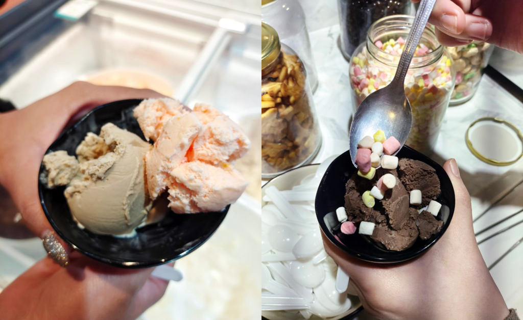 冰淇淋超濃郁超香甜,水果口味裡面有果粒,黑糖珍奶還有珍珠,你們一定要吃看看