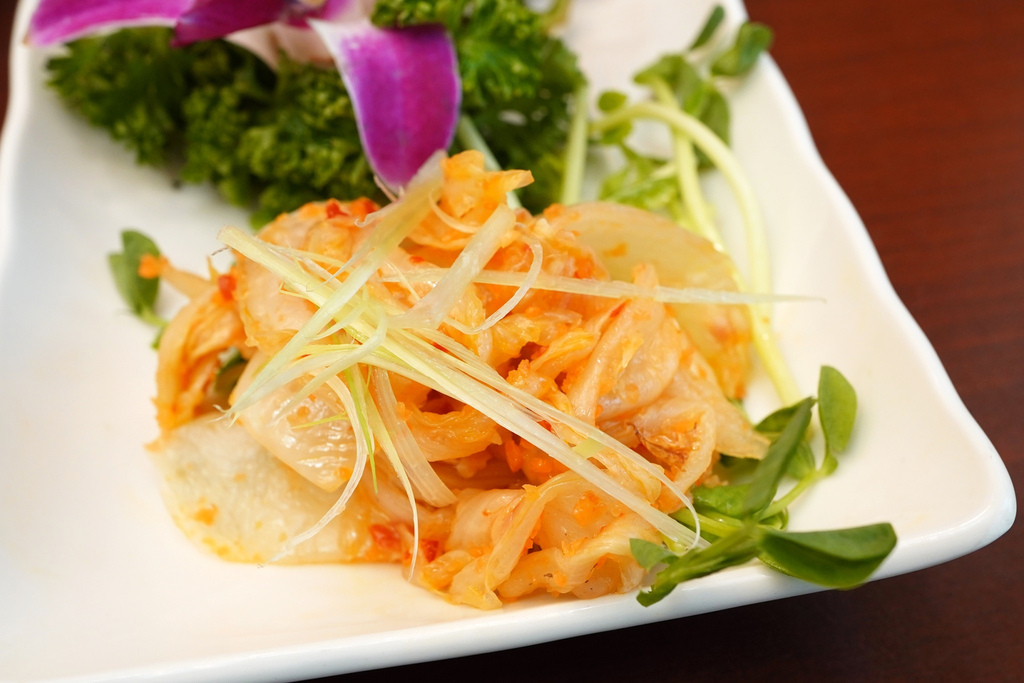 一旁還搭配自製的手工黃金泡菜、酸辣可口