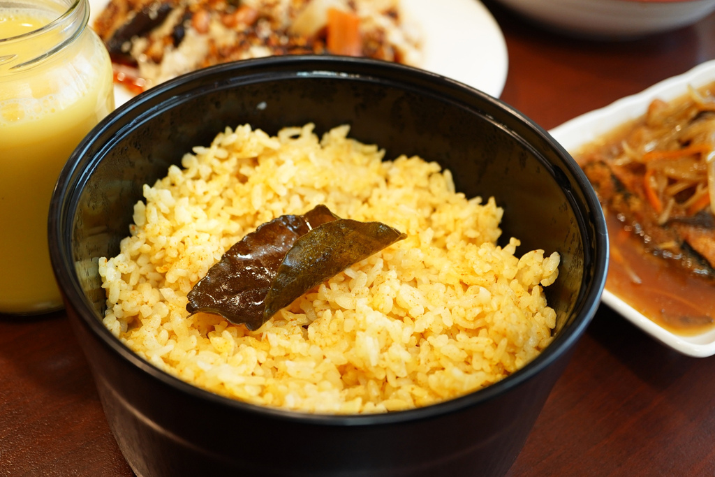 米飯飽滿帶有淡淡薑黃香,檸檬葉散發清香味