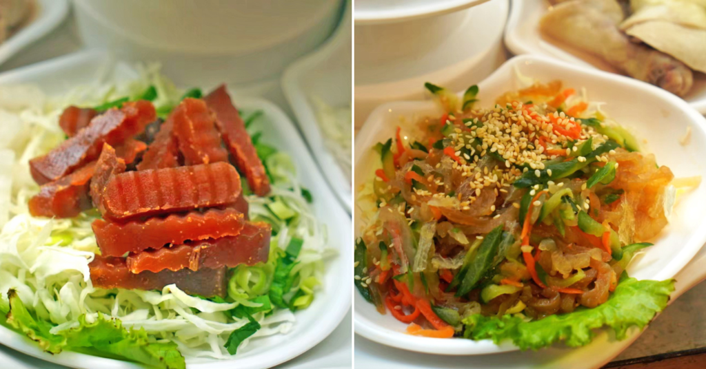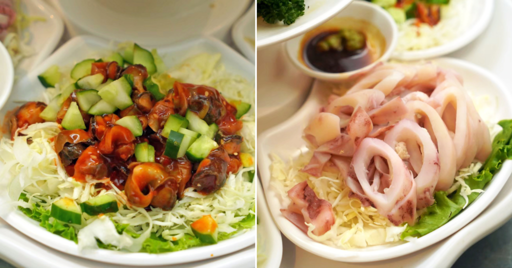 ▼是個冷盤拼盤的概念!油雞,烏魚子,海蜇皮,花枝,螺肉等拼盤。口味不錯,很唰嘴!基本上有被開胃到!