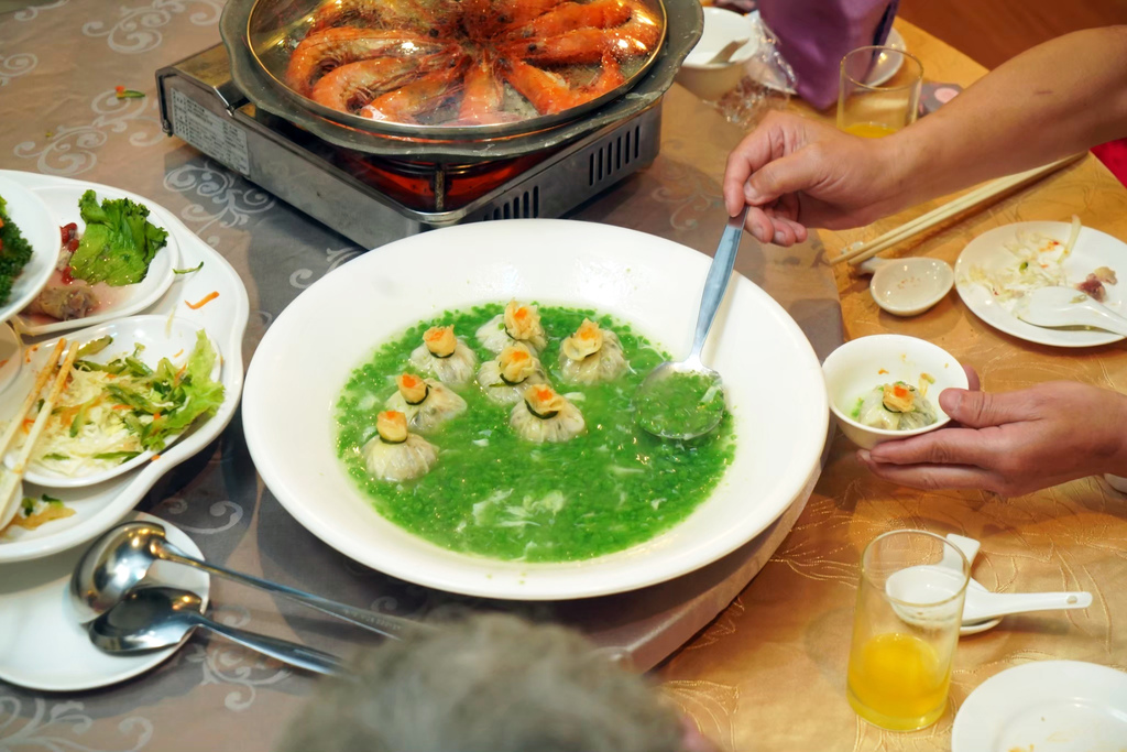 ▼其實菜單只有名字,並沒有說明裡面有什麼!所以我們也不能百分百確定是用什麼食材!一個一個像小籠包的美食,包著一些肉與蔬菜,搭配羹湯,我個人覺得很有創意,口感也好吃!