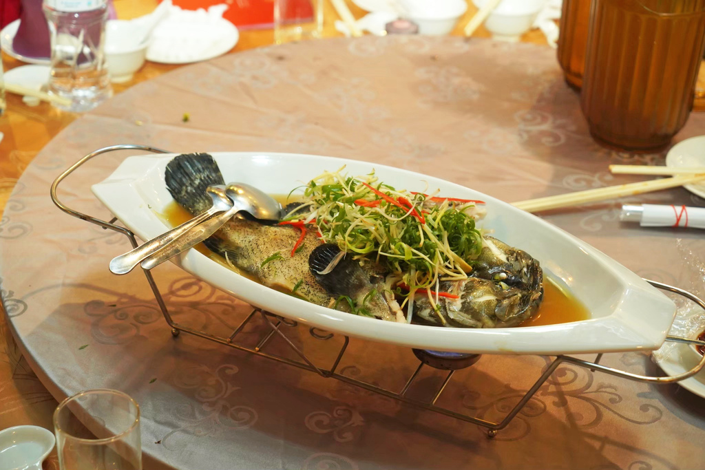 ▼一大尾清蒸魚上桌,味道很鮮,口感有港式餐廳的味道,看賓客反應,也是秒殺!