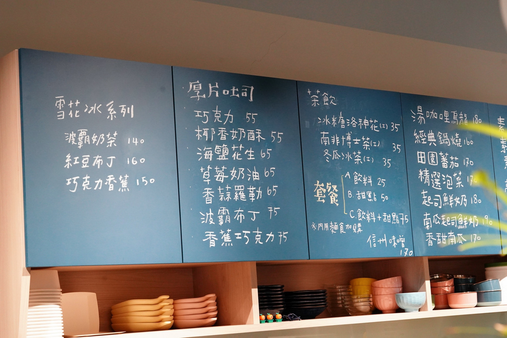 有鍋燒意麵、鍋燒烏龍、鍋燒飯湯、水餃、吐司,可以搭配套餐甜點+飲料,吃完也可以點雪花冰,涼爽一夏!
