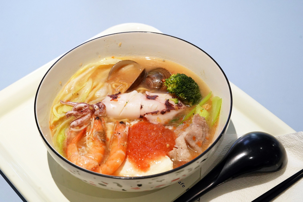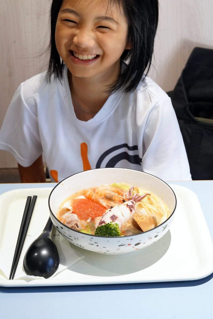 ▼這碗是我的~湯頭色澤看似很濃,但是喝起來非常爽口哦!味道不會很重,鹹度對我來說剛剛好,味噌豆香宜人,尾韻帶點些許海鮮的鮮甜,好喝!我也把湯喝光光了!不愧是母女😍