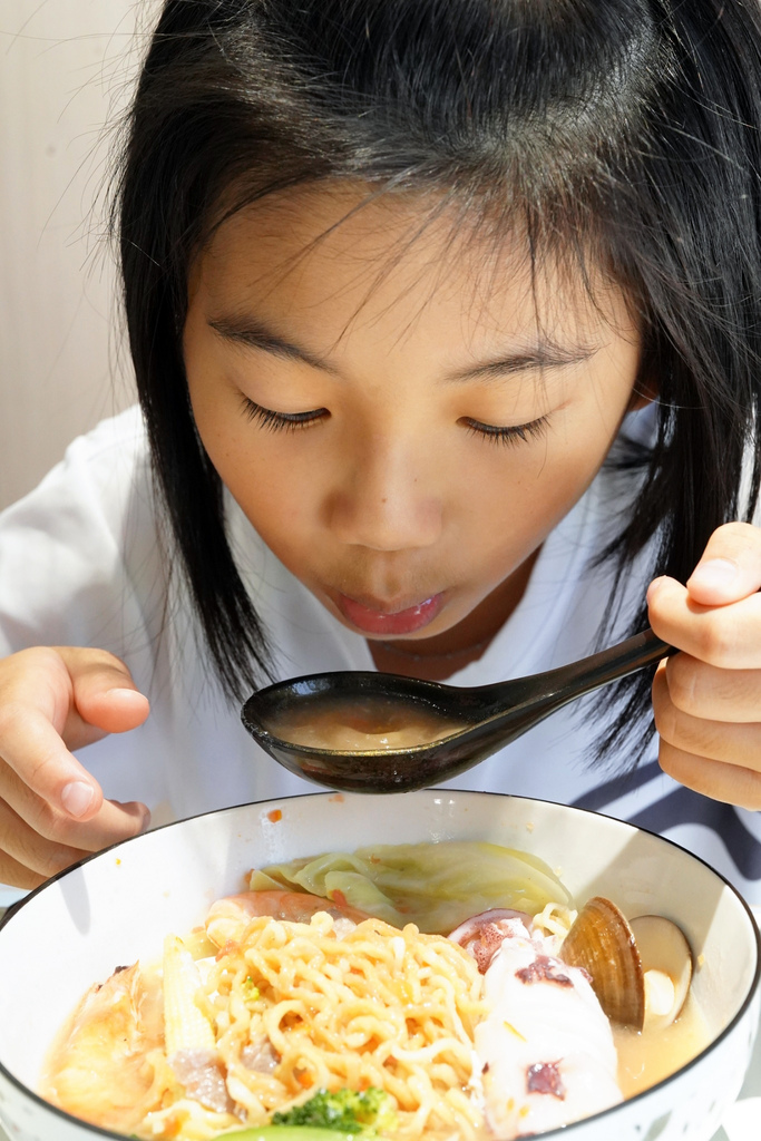 ▼女鵝果然也像我,第一口一定先喝湯!英文課下課餓扁啦!