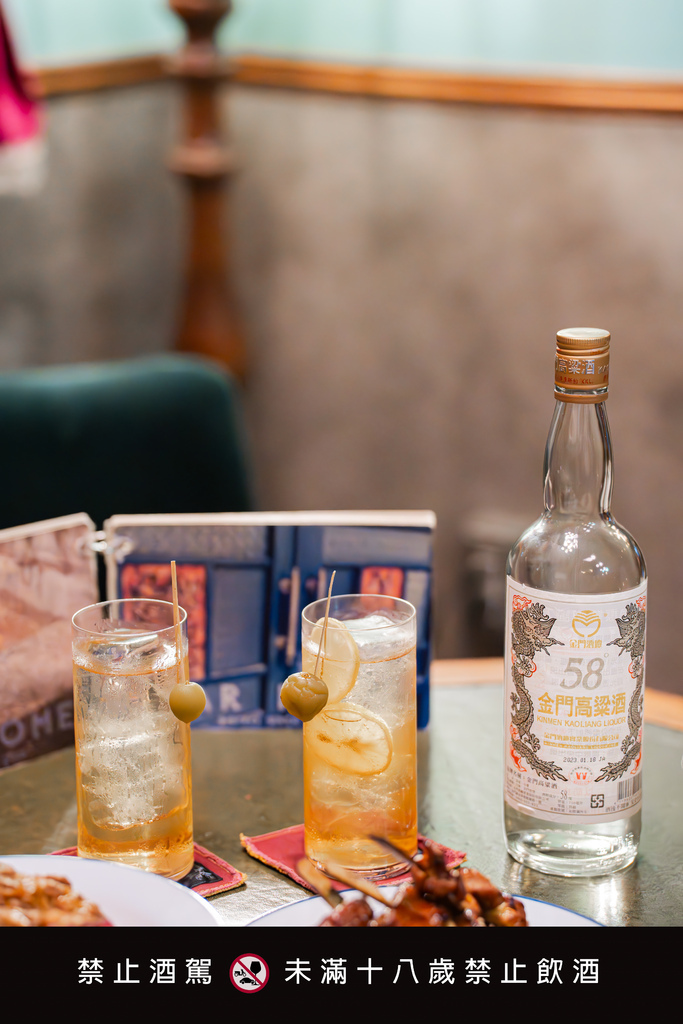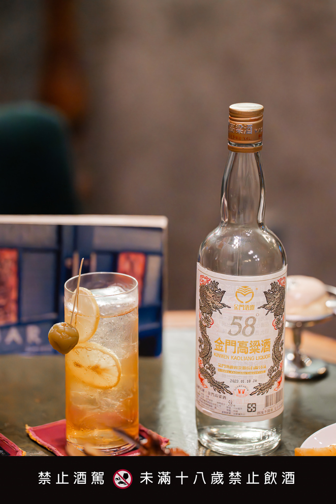 攜手台灣調酒之父Aki老師,打造一支以58度金門高粱酒為基酒,加入台灣綠茶、南投梅子,堆疊充滿台灣味的年輕化高粱酒特調-Kinmen Fizz 金門費茲。