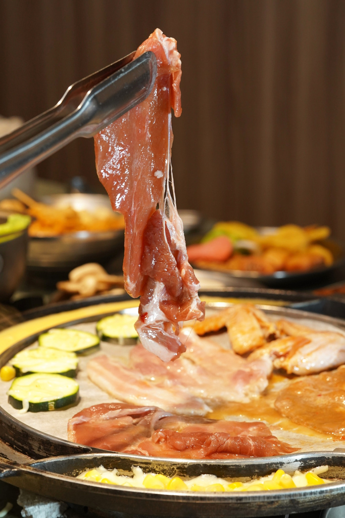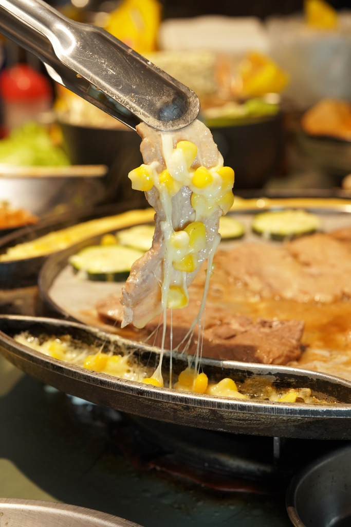 鐵盤燒肉除了吃到飽品項比較多,趣味性也比較多!因為可以自己動手烤蛋捲、烤玉米蛋、烤蔬菜蛋來吃!
