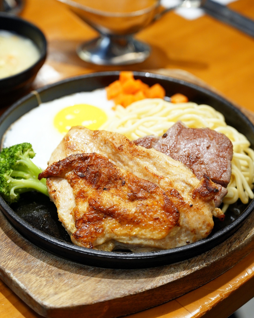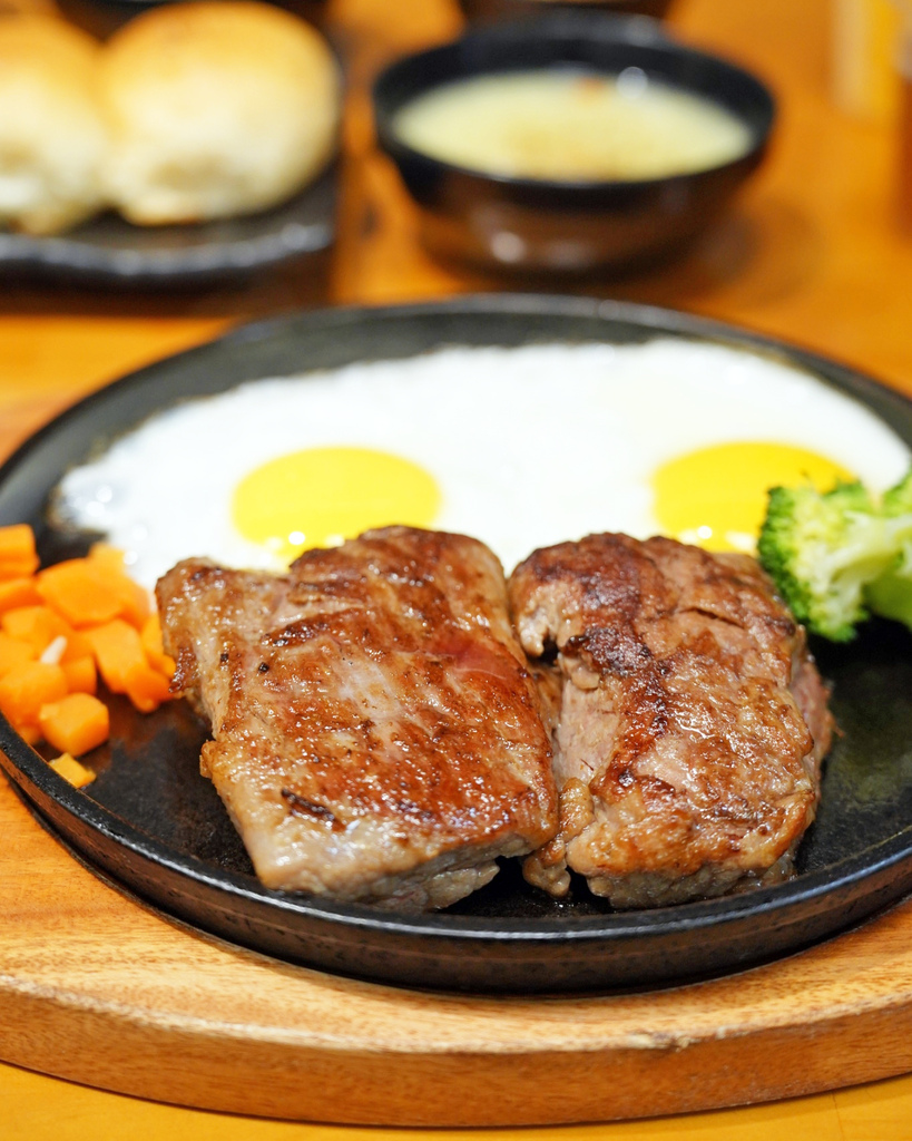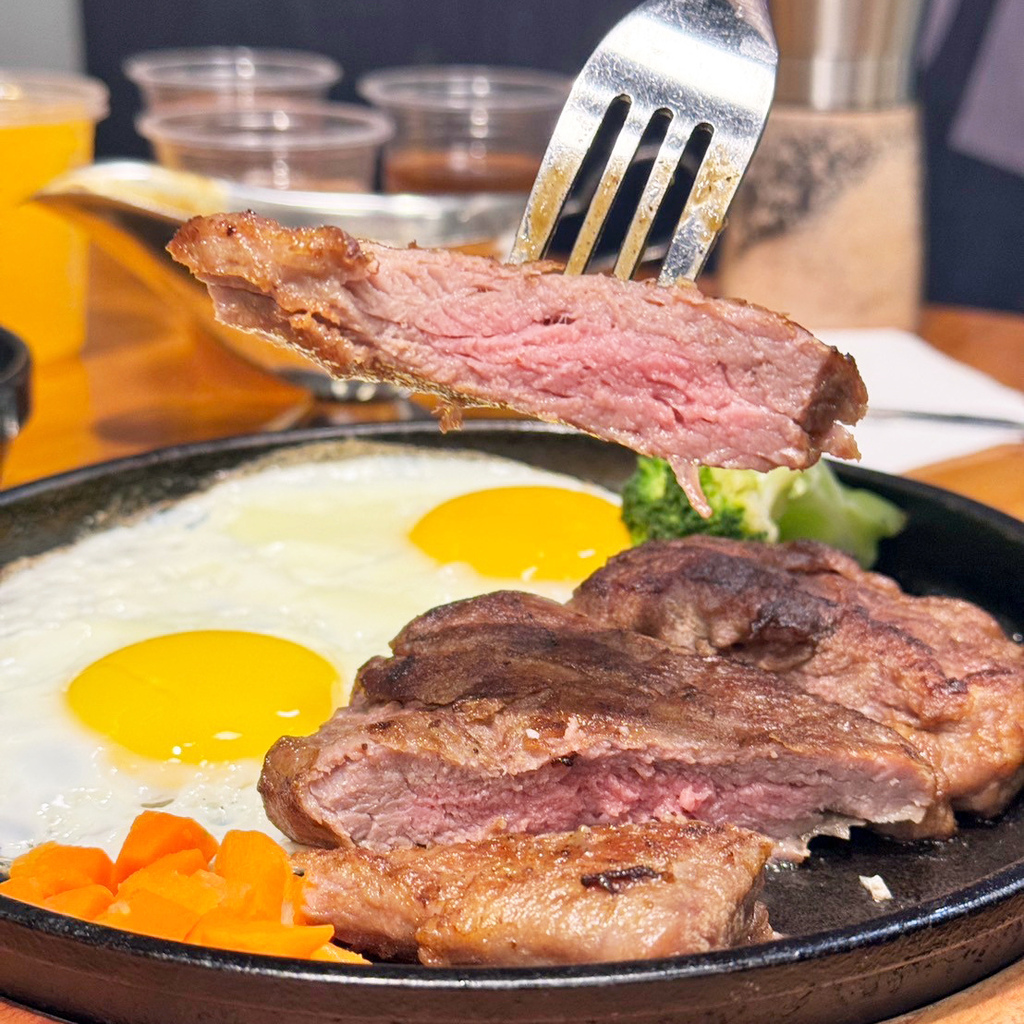 魔力牛排餐各有特色,從精緻的菲力牛排到份量十足的雙拼,再到海陸雙拼的自由組合,以及霸氣十足的戰斧豬排,蛋白質與碳水的聯合雙打(原塊肉與鐵板麵餐包),是連一滴醬汁也不會放過的完食!吃得一乾二淨啦!