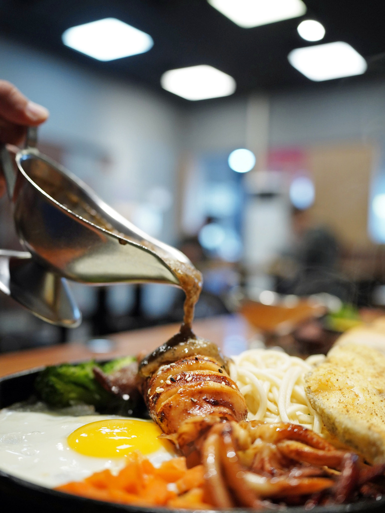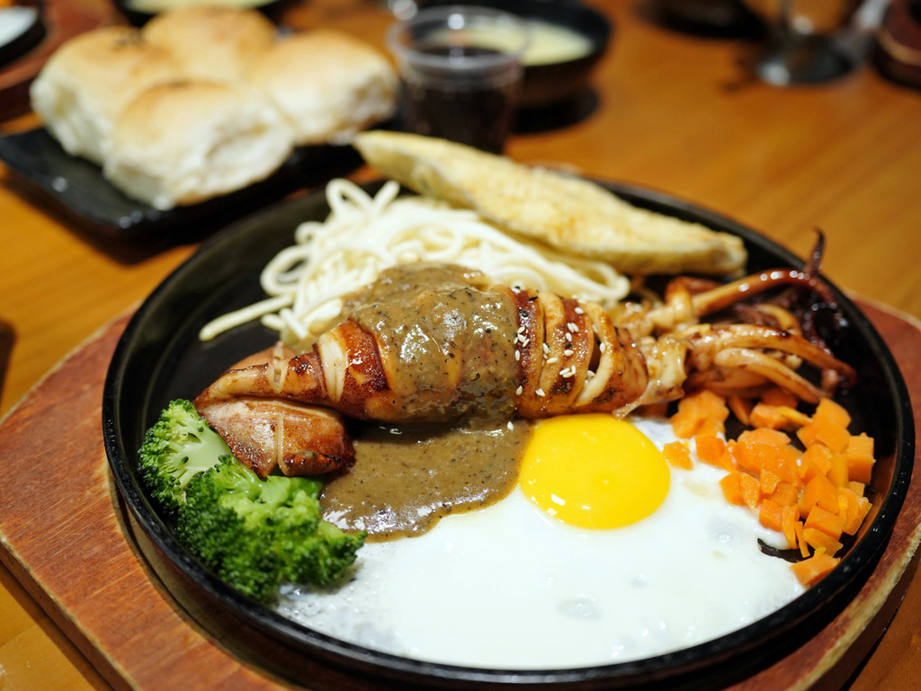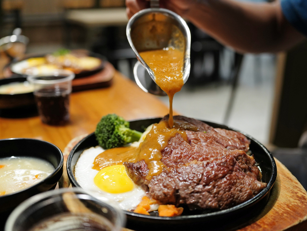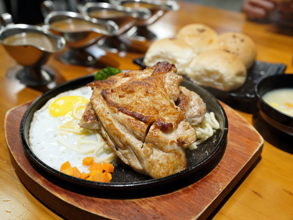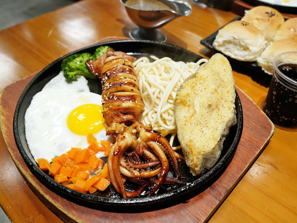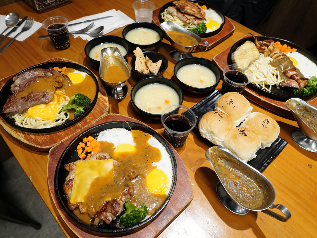 我最愛的就是他們家的鐵板香氣,一送上桌就香到不行,肉質鮮嫩、份量也實在。排餐附的鐵板麵也很加分,搭配醬汁鹹香順口,不愛吃麵的人也可以換成鐵板荷包蛋,很貼心!