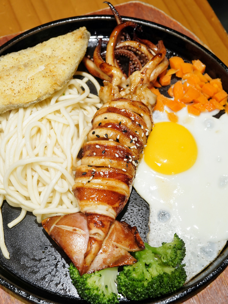 海鮮控的最愛,魷魚Q嫩有嚼勁,魚排外酥內嫩。