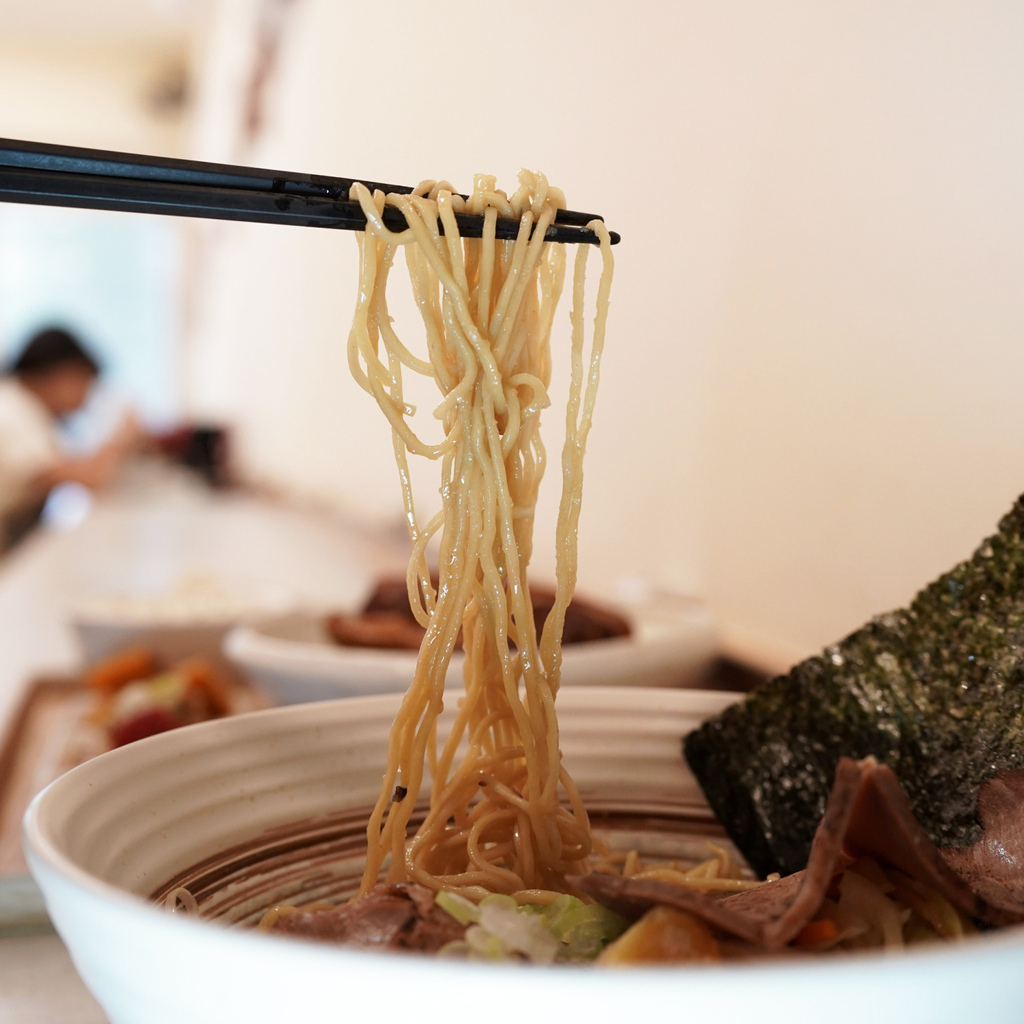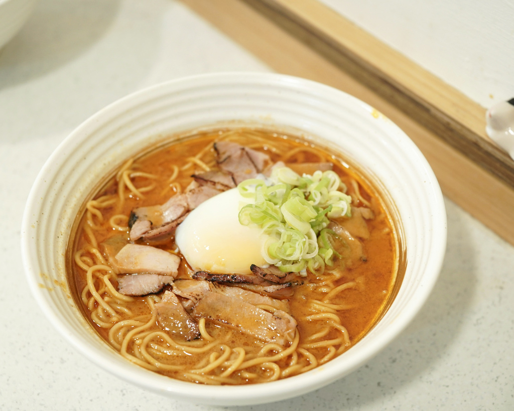 最後是朋友點的【辣味噌豚骨拉麵】,湯頭很有層次感,以醇厚的豚骨湯為基底,結合了味噌的濃郁香氣與溫潤鹹味,再帶出夠味的辣感,辣度不會過度刺激,整體喝起來濃郁又順口。麵條充分吸附了湯汁的精華,非常涮嘴,喜歡重口味的拉麵控絕對要試試!
