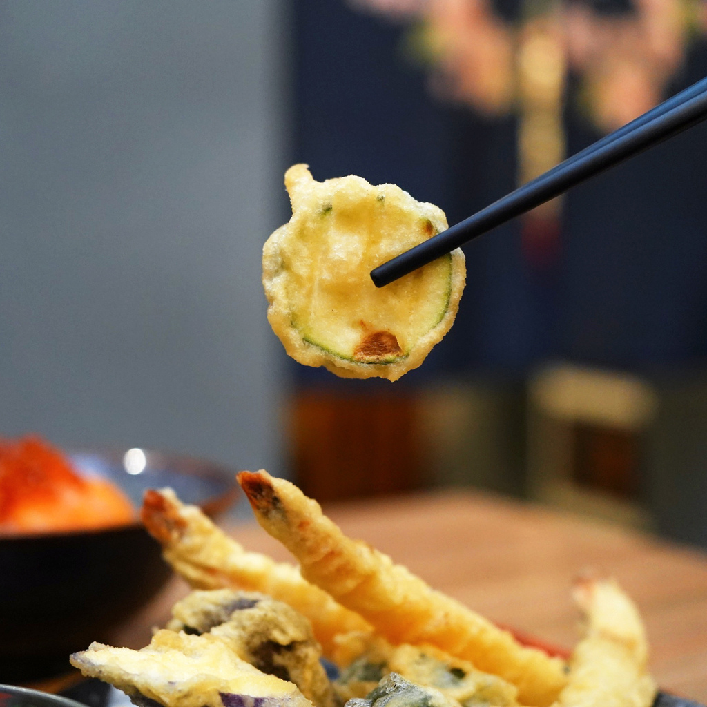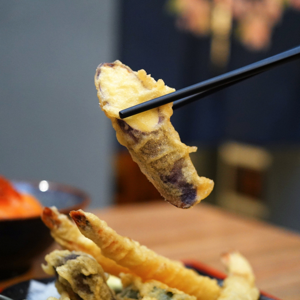 ▼另外的蔬菜天婦羅也很出色,像是炸櫛瓜、炸茄子,都炸得多汁,口感細嫩,不像有些店炸完乾巴巴的,這才是專業的日式天婦羅水準。