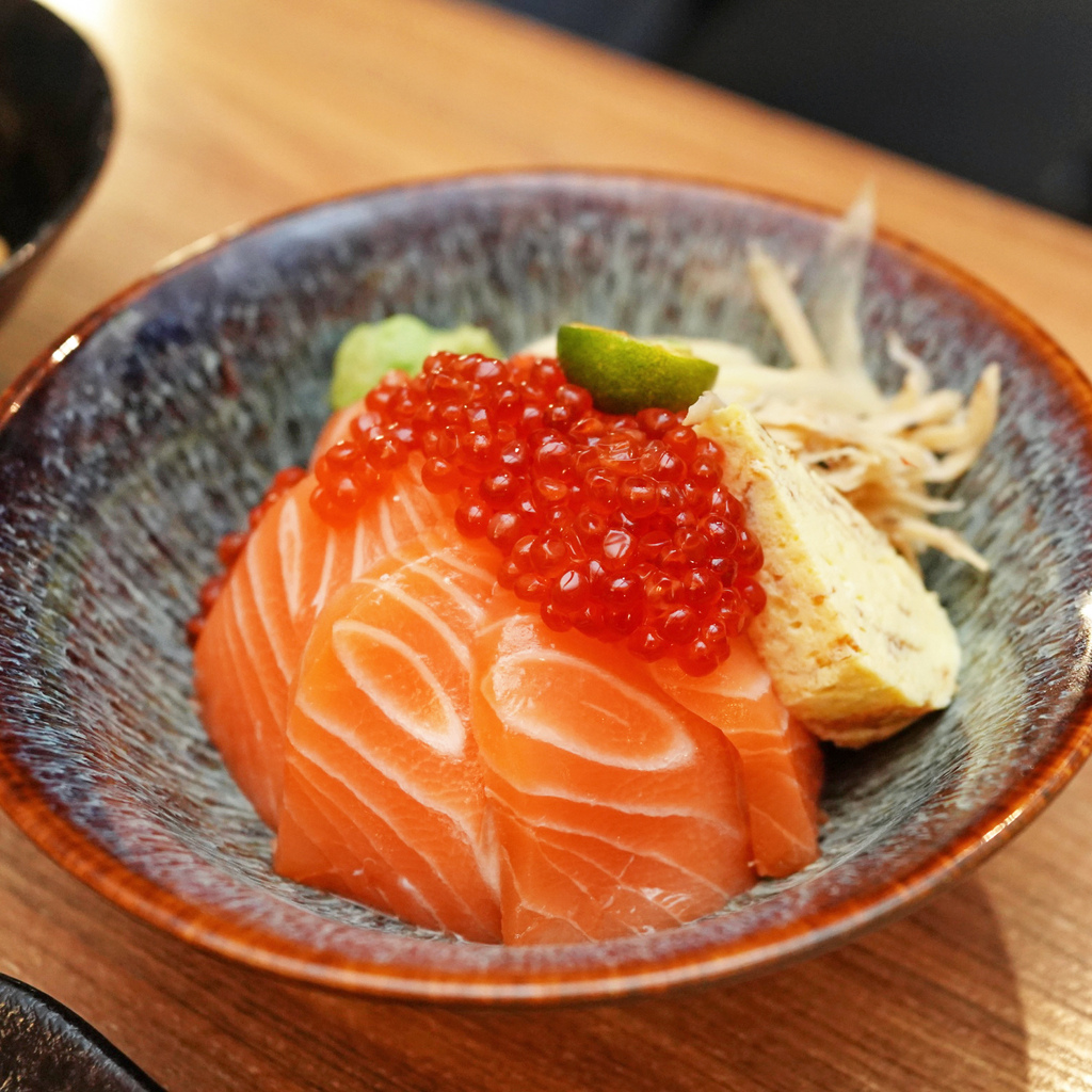 ▼我妹這個年輕人的最愛。鮭魚新鮮,看那油花就知道油脂非常豐富,入口即化,帶有一股迷人的甜味。鮭魚卵顆顆晶瑩剔透,咬下去「啵啵」的口感和那股鮮鹹味,搭配醋飯和鮭魚肉一起入口,就是親子丼的滿足感,非常過癮!