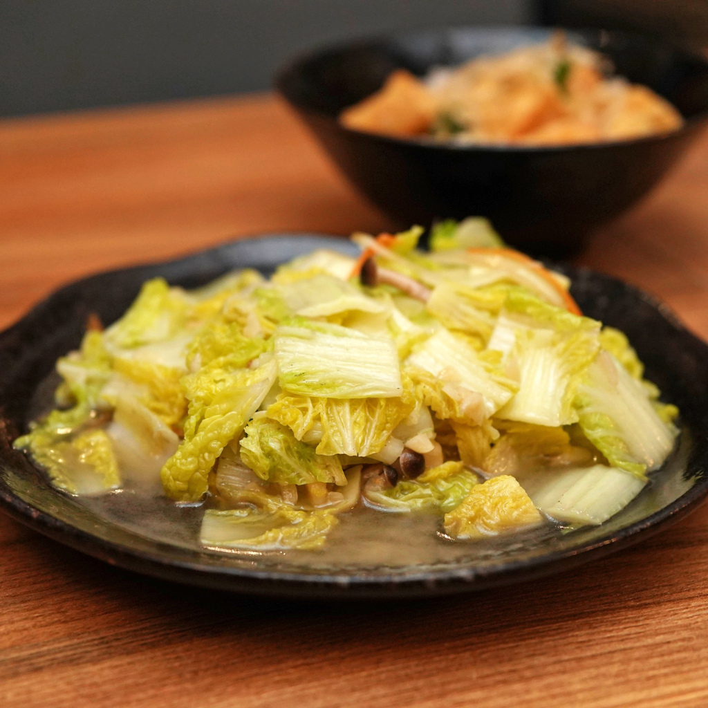 ▼這道算是比較偏向家庭式的日式小炒,娃娃菜炒得軟嫩清甜,搭配鴻喜菇,吃起來沒有負擔,讓整桌菜的營養更均衡,也讓長輩吃得很舒服。