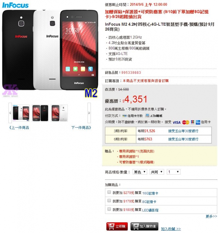 一開始8/14預購的時候myfone網站(好像是獨家銷售)是寫「預計9月初到貨,實際出貨時間依原廠供貨狀況,到貨時將依訂單順序陸續出貨…」昨晚還是今天早上時,發現預購的頁面到貨預計日期改到 9/19了。剛才看居然現在預購的要等到9/29了。訂單的狀態顯示帳款已確認,電子發票也開出來了。還有網站在這裡 說要推一樣規格的3G版,到底4G版什麼時候才會出貨呢?
