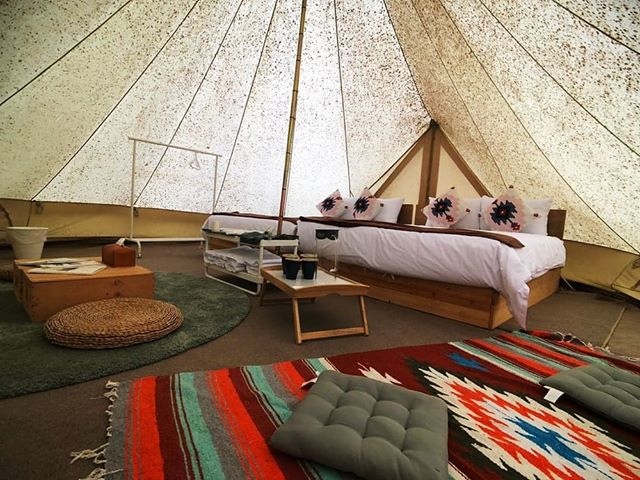 帳篷主體為神殿帳,巨大純白的神殿帳就是有說不出的氣派感。我們這次入住的為大樟樹區下的帳篷,一進門就看見兩張舒適乾淨的大床。我們一家五口睡在上面可是綽綽有餘。