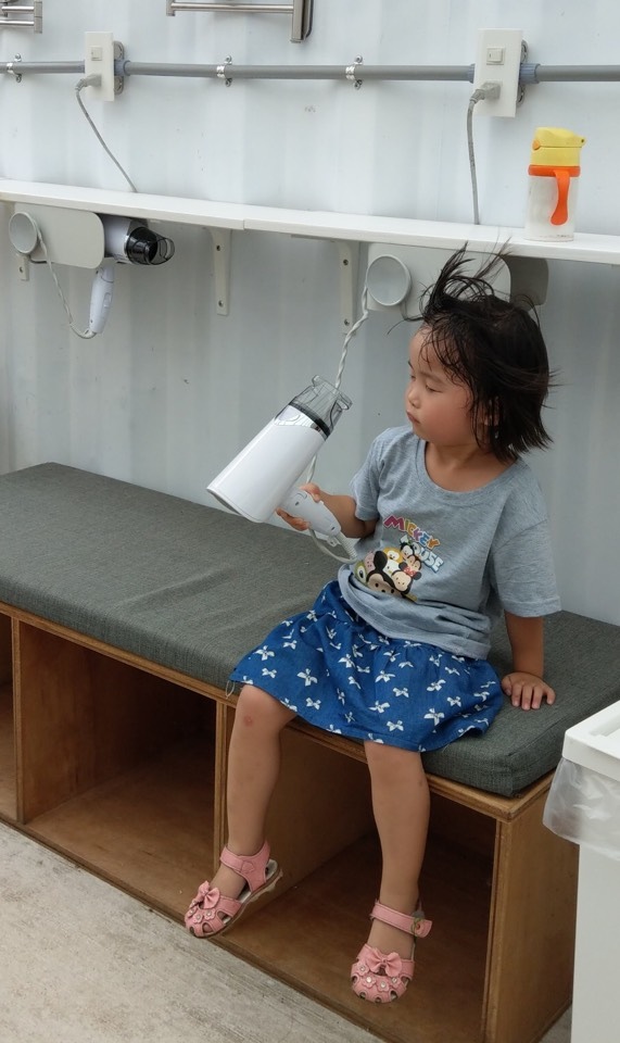 野外住宿,免不了汗流浹背,好好洗頭可是最享受的一件事。濕漉漉的頭髮一定要用吹風機來吹乾。