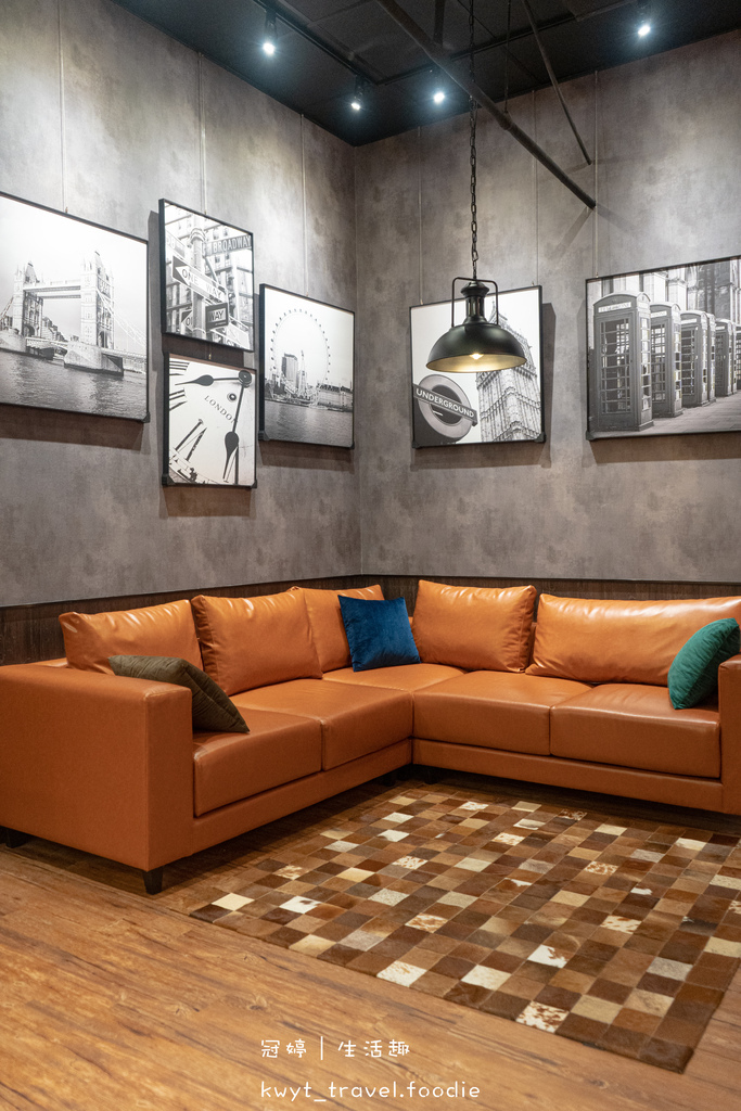 走美式工業風的用餐空間裡,左側為6人桌;右側為四人桌,蠻適合小型聚餐的。