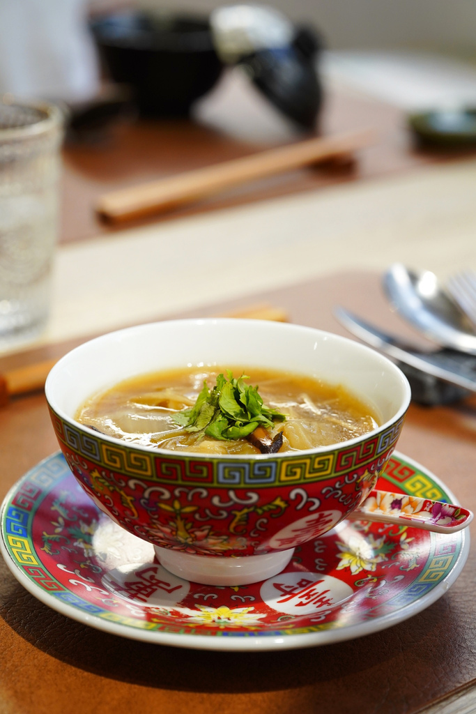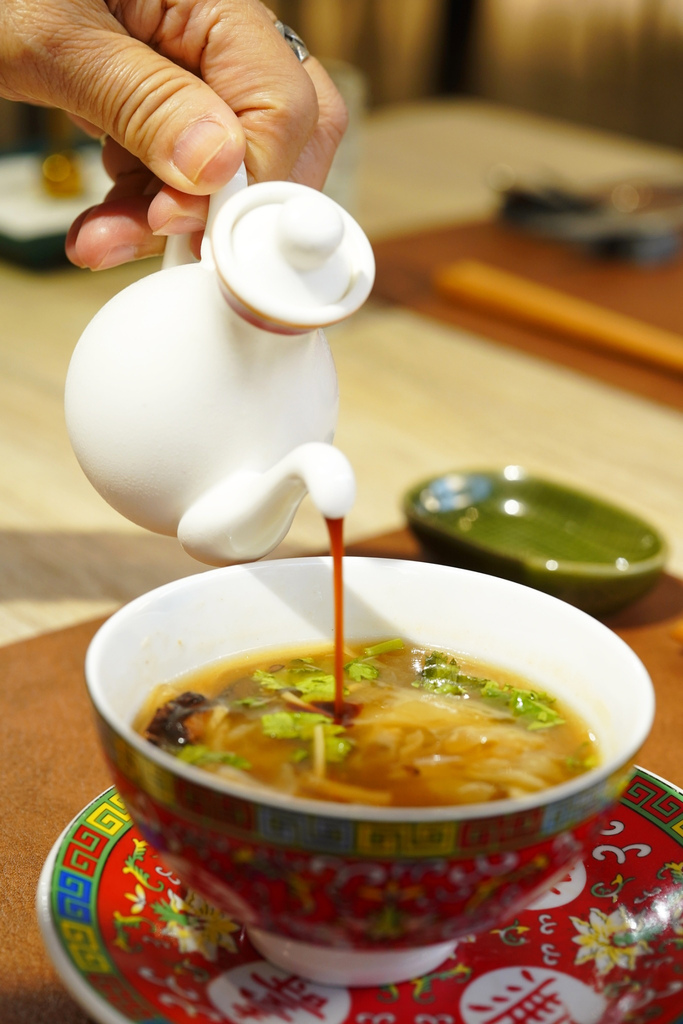 ▼素食魚翅羹,不僅美味,更充滿了健康與環保的概念。採用大量高纖蔬菜和猴頭菇熬煮,口感豐富,鮮美清甜,搭配素食猴頭菇酥,特製紅醋的酸爽提味,更讓這道料理的風味更上一層樓,完全不輸真正的魚翅羹!