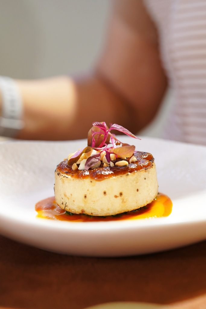 ▼另一道是素鴨肝,素鴨肝口感細緻,搭配蔬菜和堅果增加了口感層次,以及上層的現刨義大利黑松露,香氣濃郁,創新感的素食料理!每一口都是驚喜。