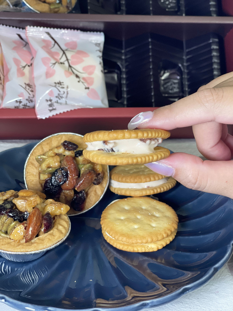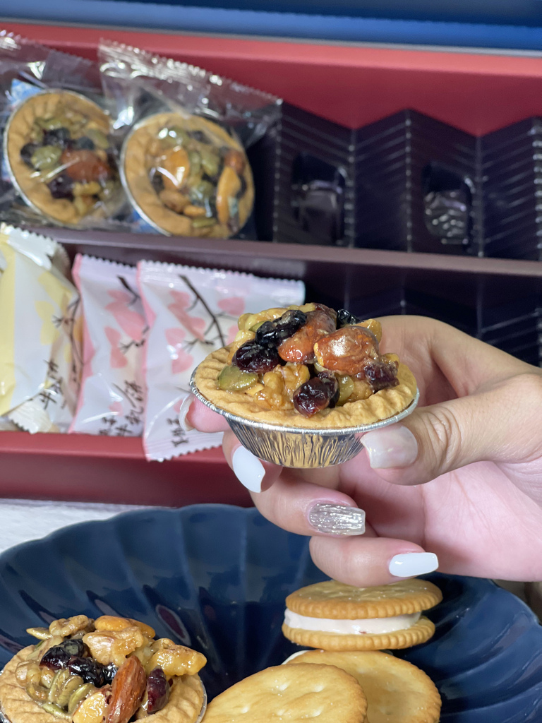 ▼第二款是牛軋餅混搭堅果塔,牛軋餅口味有牛奶和蔓越莓,鹹甜鹹甜的很唰嘴,堅果塔料滿多的,塔皮也是濕潤鬆軟,整體搭配吃起來很香。