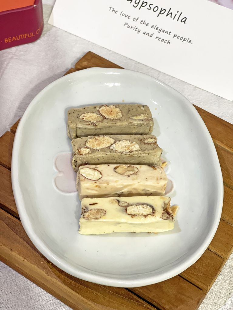 ▼六種口味各有各的特色,我每款吃過覺得都不會雷,滿忠實呈現食物原本的味道,不會有香精感,真心推薦大家想吃牛軋糖一定要試試看這家的!(同事們和他們家人朋友都是好評,真的滿不簡單的)