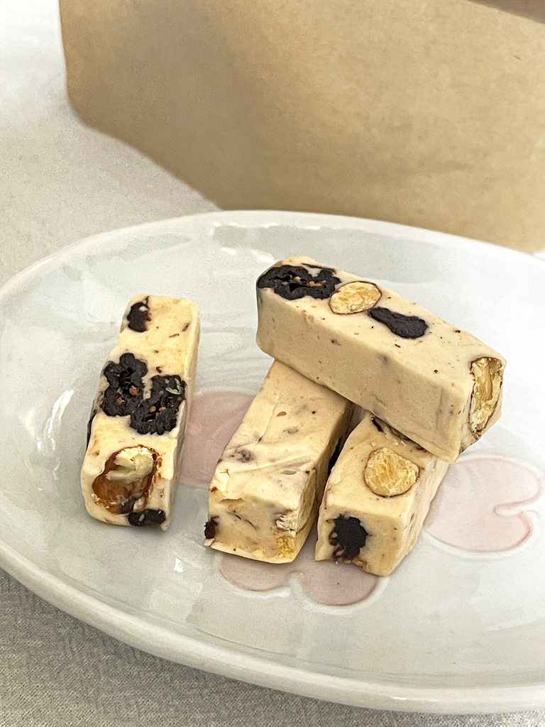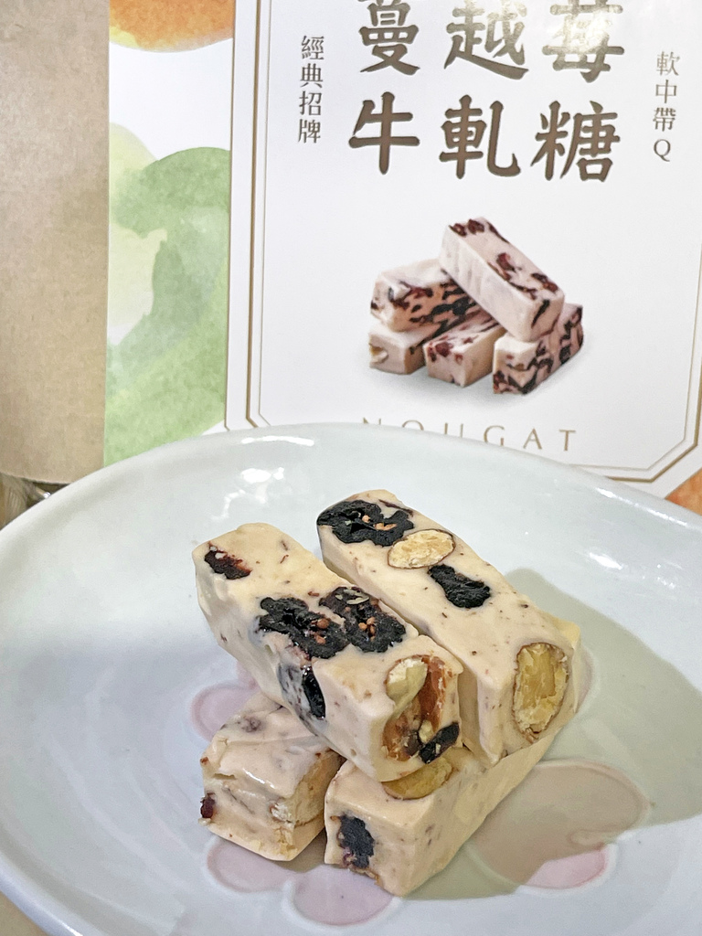 ▼蔓越莓牛軋糖超級真材實料,第一次在牛軋糖看到這麼多果乾!吃起來奶香帶著蔓越莓酸V酸V的滋味,要吃膩很難~~