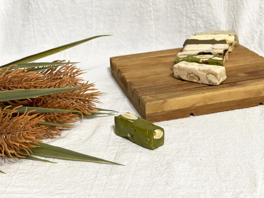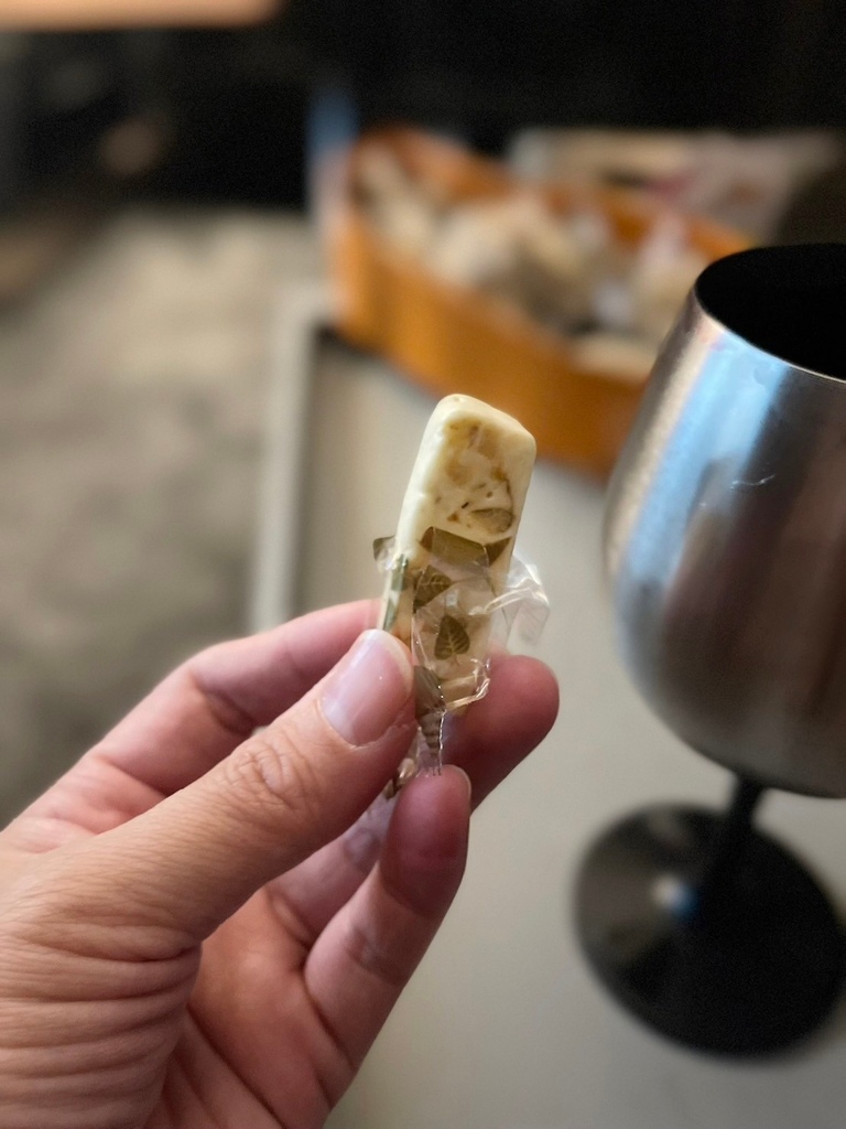 ▼抹茶牛軋糖吃起來就是抹茶歐蕾,抹茶香和奶香並行;焙茶牛軋糖吃起來茶味就比較重一點,我覺得會更對老人家的口味,像我爸就滿愛的。