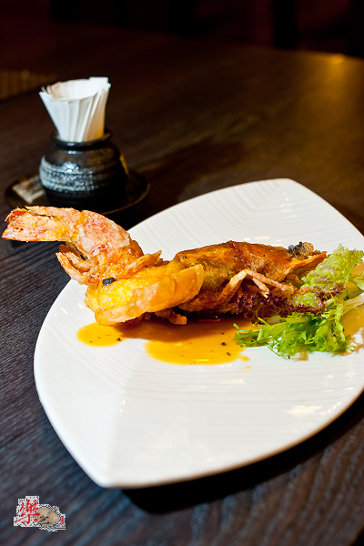 第二道菜名為"牛肝菌野菜明蝦", (如上圖), 明蝦炸的很酥脆可口, 讚!