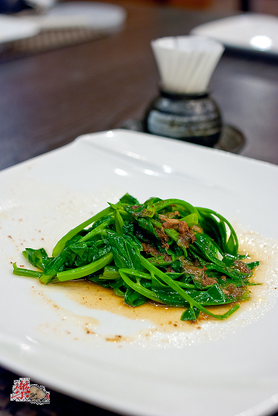 第六道菜名為"古味醬汁野山蔬",(如上圖), 這道青菜炒的很清脆, 搭配他們的醬汁算是蠻下飯的。
