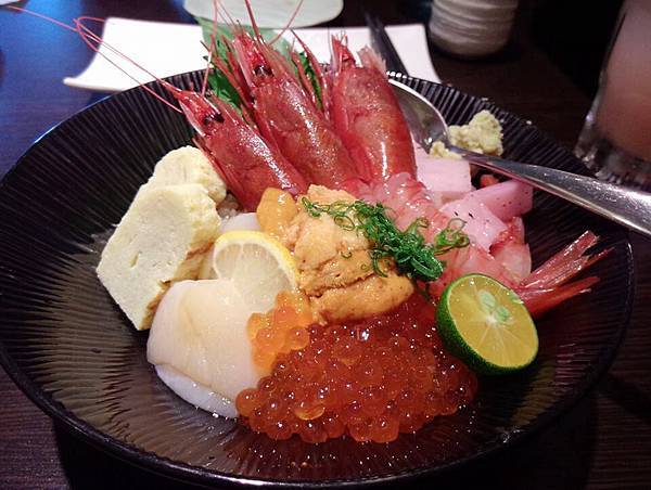 整體來說cp值不高,畢竟那個價位在高雄真的蠻貴的,但如果是吃氣氛跟裝潢應該蠻值得的,用餐時旁邊有一桌炫富中年人一直大聲嚷嚷的在講事業作多大,兒子要申請什麼名校,點菜要點什麼東西它跟老闆很熟之類的讓人不是很舒服,所以當天依職希望能快速結束用餐離開,所以氣氛我們也沒吃到…但他們的干貝海膽甜蝦蓋飯雖然偏貴但蠻好吃的。