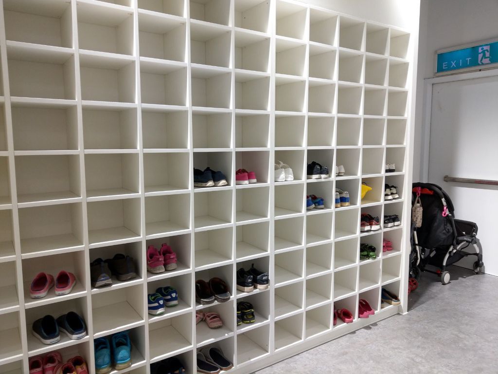 購票櫃台後方,有一小空間可以置放鞋子及推車。