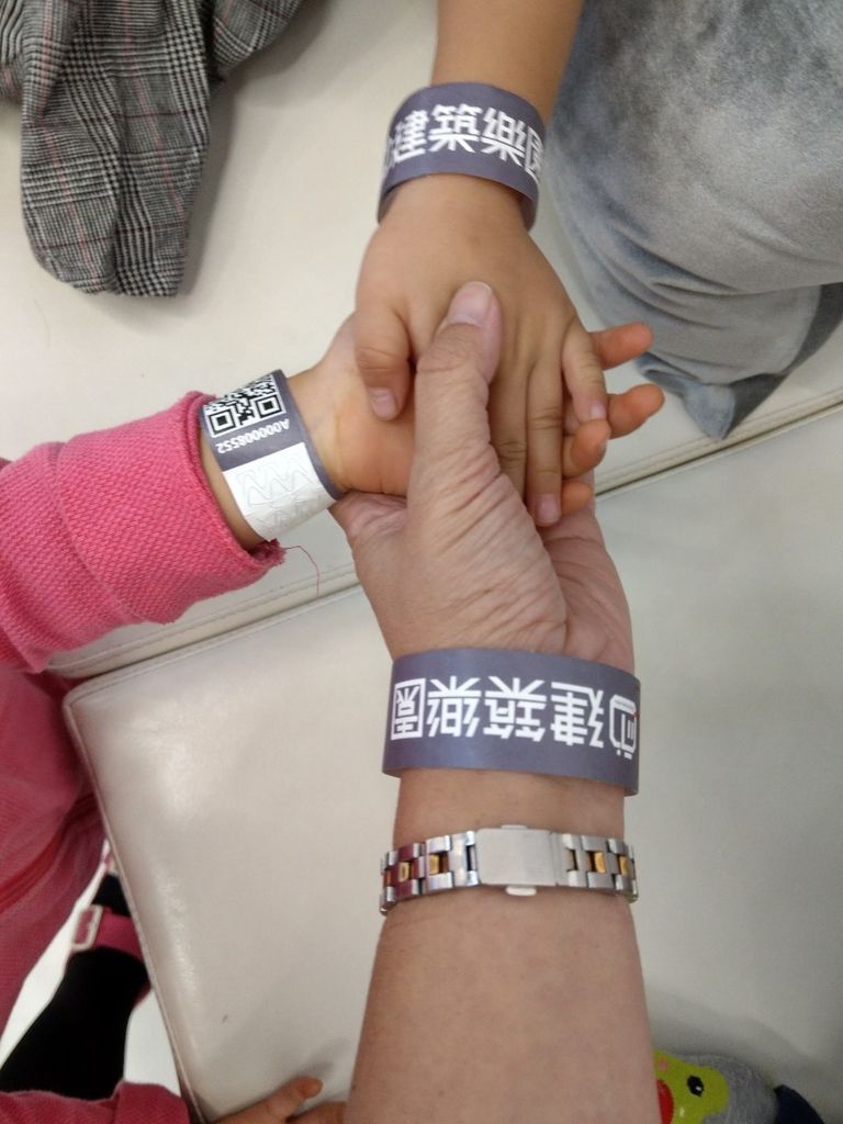建築樂園的門票為手環,此材質非常耐撕,不用怕斷裂。進出遊樂場皆需掃手上的QR code來感應閘門。