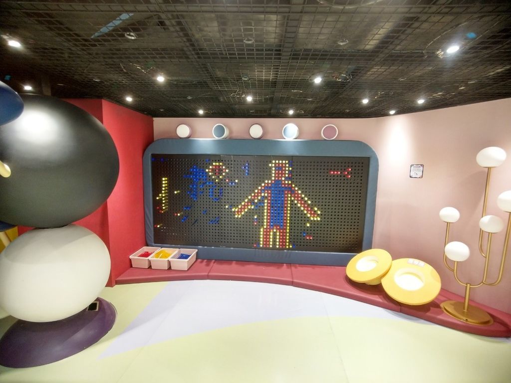 比較特別的是銀河時代館地板都軟墊表面較光滑,瘋狂媽咪覺得可以穿底部有止滑功能的襪子可以方便寶貝在館內探索,不過跌倒的話也不用擔心,館內可是給你滿滿的軟墊大平台,完全不用擔心碰撞。