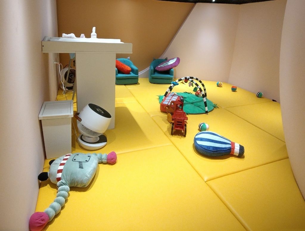 這可說是嫩嬰及媽媽的天堂。這裡除了設置尿布檯,更還提供了尿布及濕紙巾,方便媽咪更換尿布。如果覺得外面的世界怕大孩們踩到嫩嬰,那在這裡也提供一個安全的環境,嫩嬰可以在這裡放心爬行。