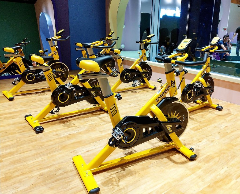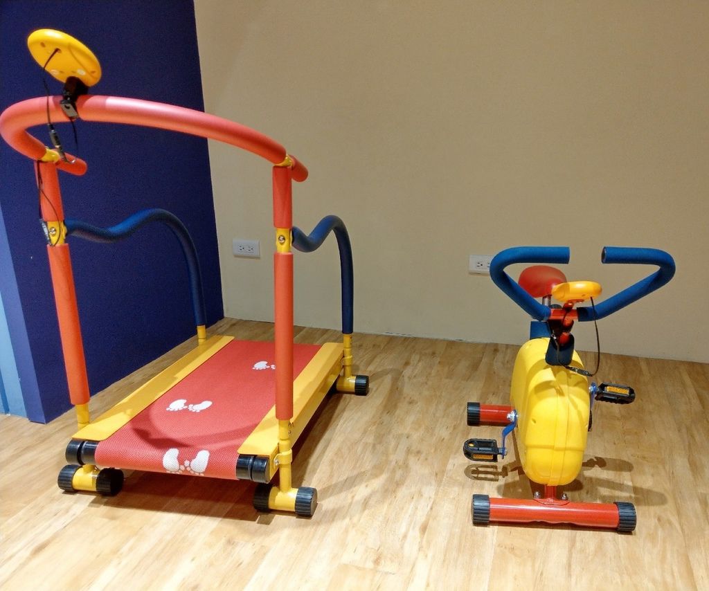 兩排的飛輪氣勢磅礡的展開,這裡可是貼心規劃了家長的動次動次的運動空間。