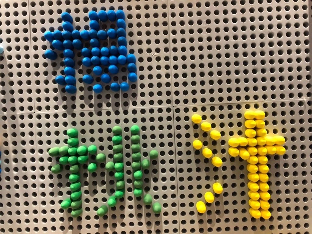 軟性的積木搭配著牆面,可以千變萬化、千奇百怪地將腦中創意呈現在積木牆上,就讓我偷渡一下粉專名稱(歡迎大家來坐坐)。