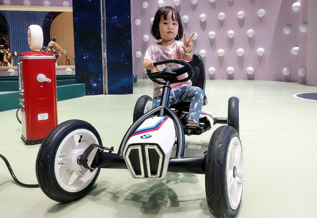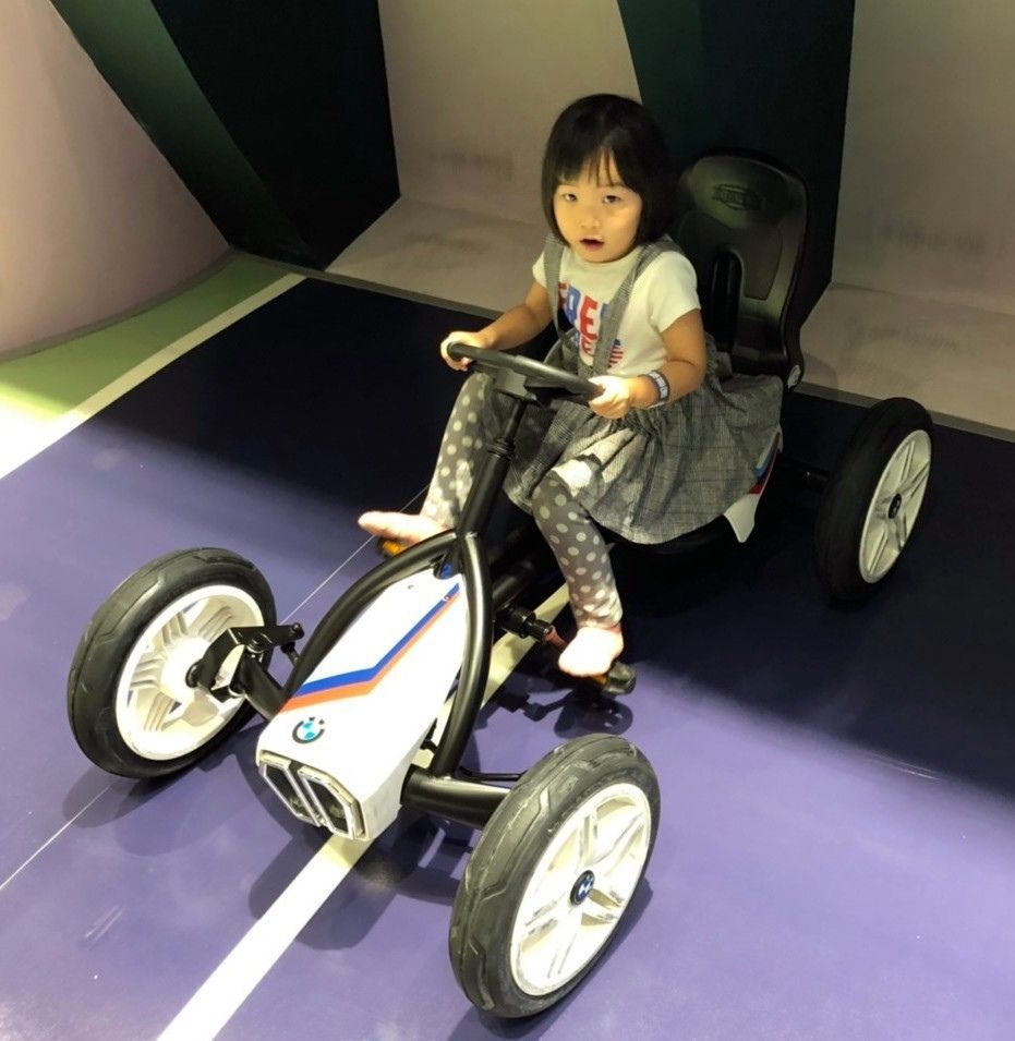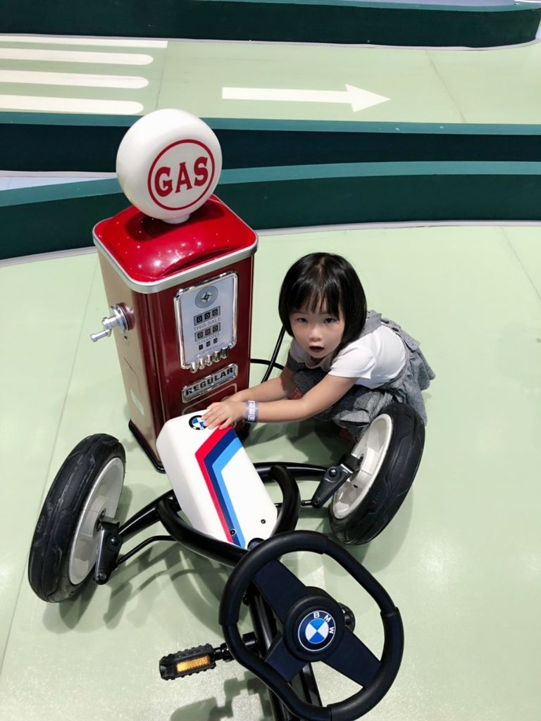 登勒~~這車牌子還是德國工藝-BMW。媽咪有試轉一下龍頭,真的蠻好使力不卡卡,可以無礙的在街上尬車,絕不自撞(請勿學習)。在這裡可是教小孩交通規則的好地方。根據交通號誌的轉換,多多可是有遵守紅燈停、綠燈行、(黃鐙輝)。