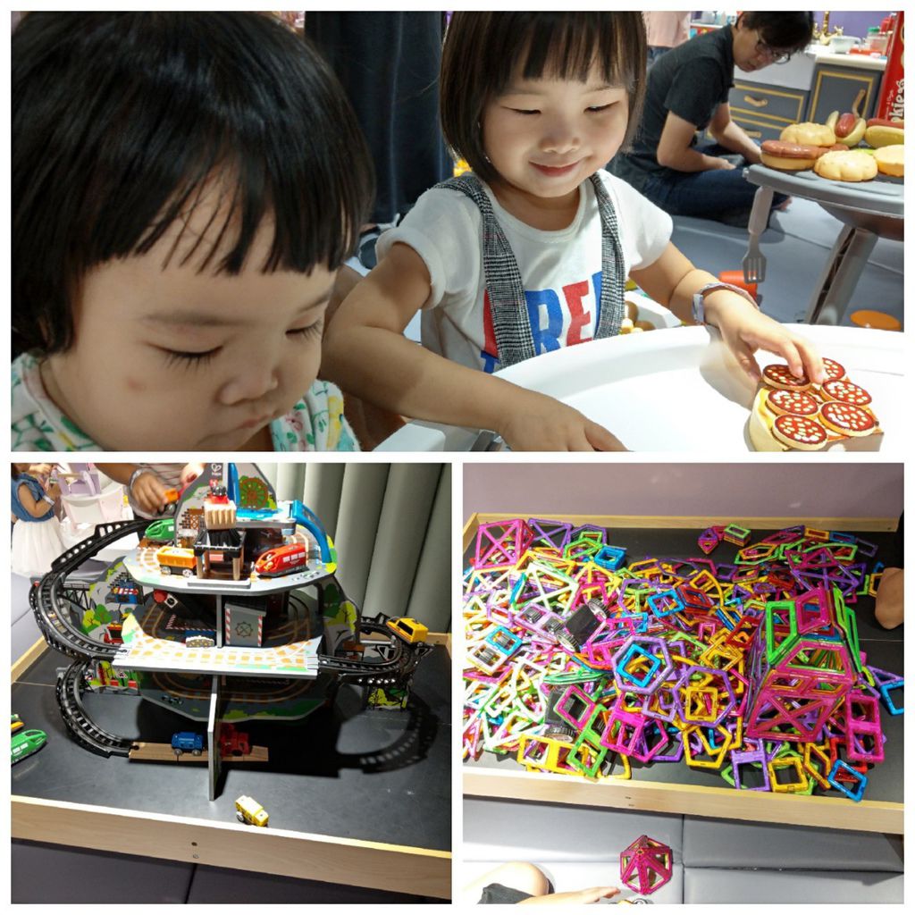 這裡擺放的玩具都是小朋友的心頭好,擬真的辦家家酒玩具、造型磁鐵片、全套的停車場等…