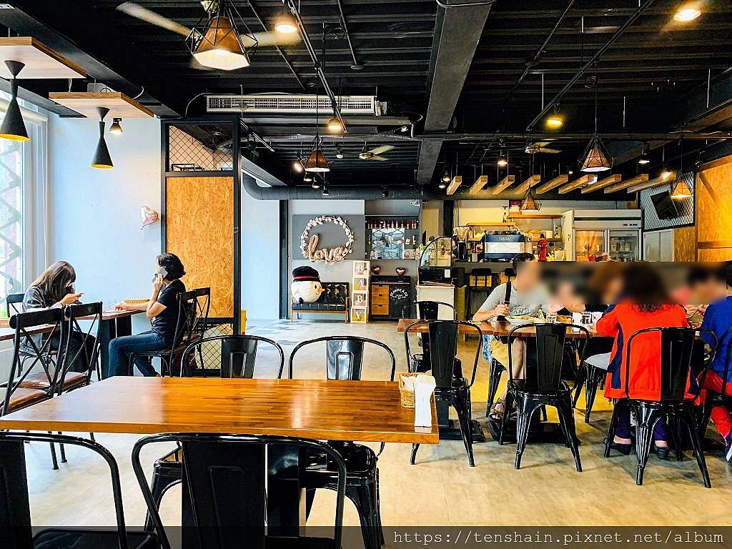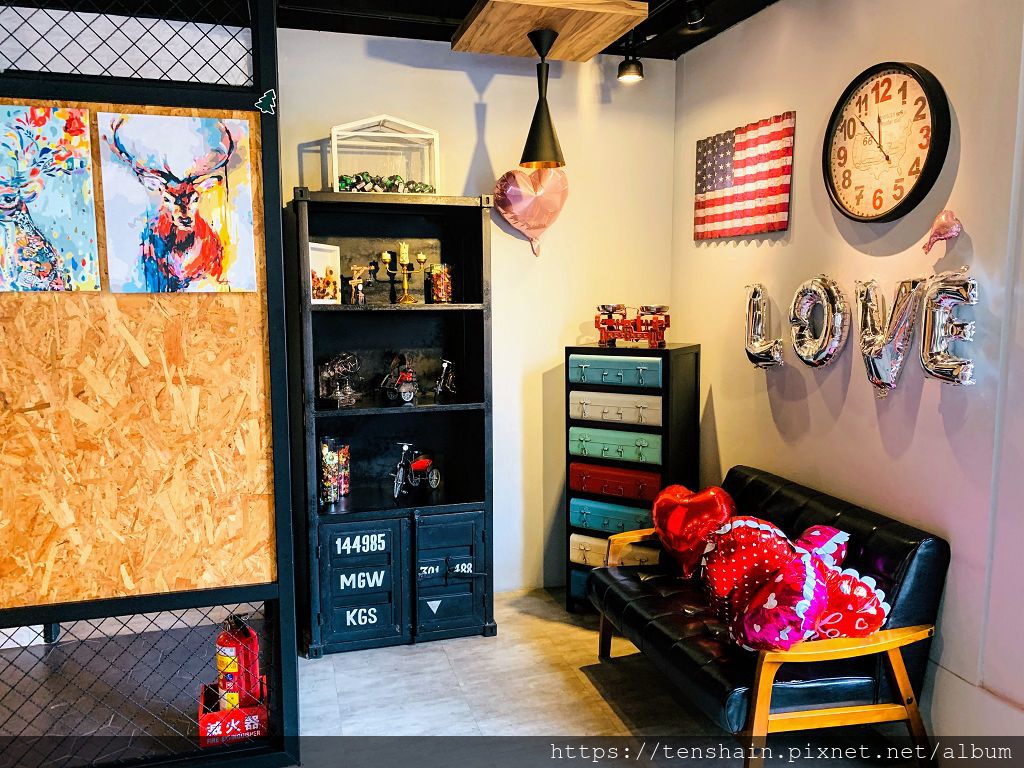 進得門來一看,裝潢是時下流行的工業風,簡潔明亮。入口左側不能免俗的佈置了打卡牆,大大的 LOVE 很適合網美拍照。