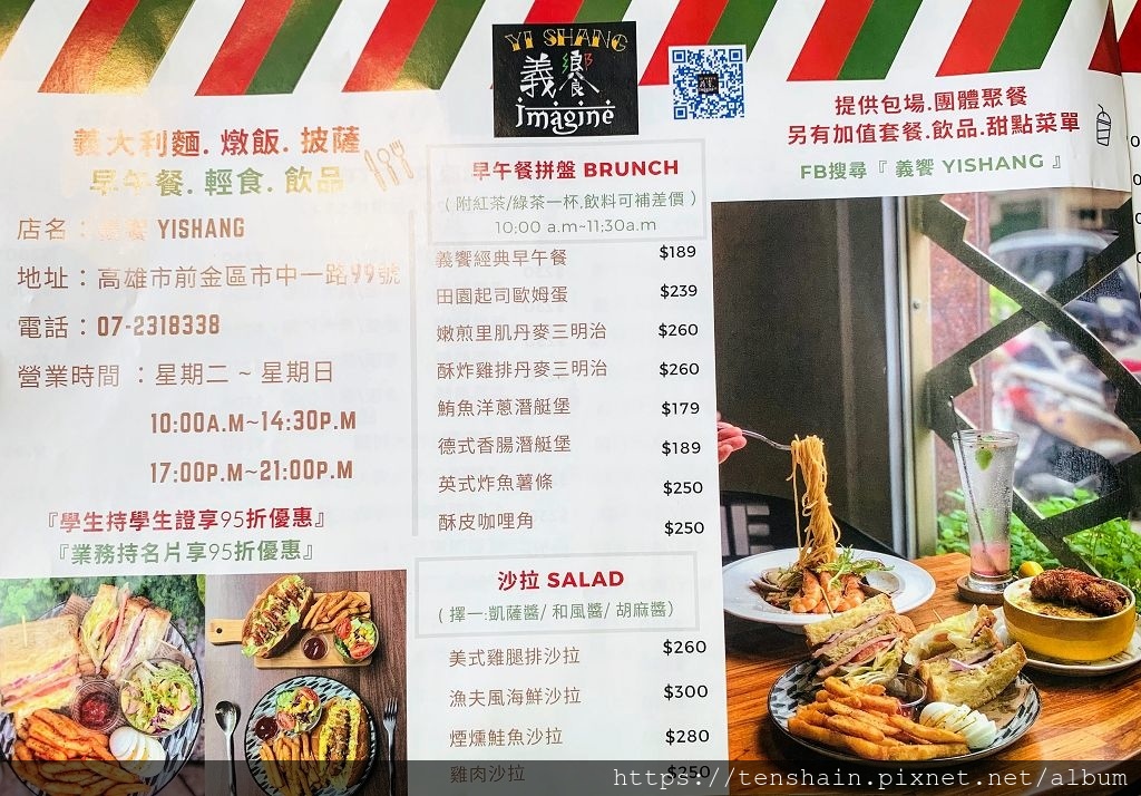 這次到高雄主要是為了參加二姊小孩的婚禮,宴會時間是晚上六點。我們一早從台北南下,到了高雄已經十一點多了,大女兒一路從台北睡到高雄,老婆在車上是睡睡醒一醒,只有我是一路撐到底。到了高雄,把車停進今晚下榻的國賓飯店後只想找個近一點的餐廳,趕快吃完中餐睡一覺,才有精神參加晚上的喜宴。參考了幾個美食 APP ,發現就在國賓飯店二百多公尺外,有一家義饗義大利餐廳評價不錯,義大利麵正是大女兒喜歡的料理,我們當然無異議通過,立刻前往。