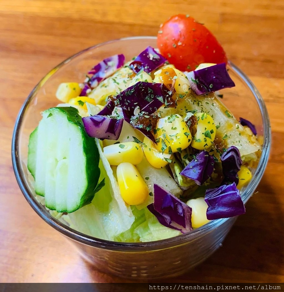 沙拉夠新鮮,但是醬汁少,也許健康,但不符合我們的口味。