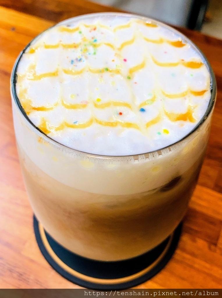 焦糖風味鮮奶茶滋味蠻好,上面一層厚厚的奶泡經久不散。淋在上面的焦糖非常甜,剛好是大女兒喜歡的甜度,但是如果不嗜甜的可能要點少糖的比較好。