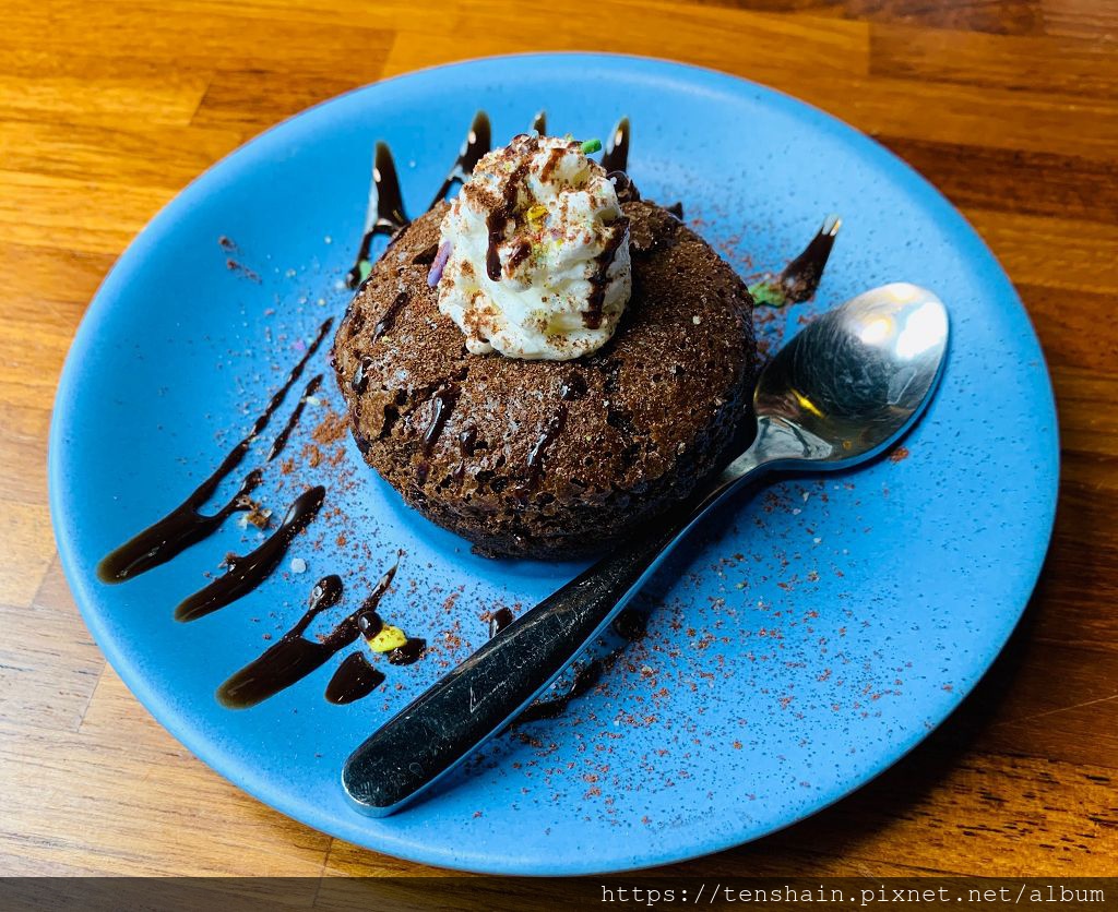 不過到了甜點這個環節,明顯出了一些差錯。點餐時我們和負責點餐的小姐確認飲料可以先上,甜點則等我們用完正餐再上。等我們用完正餐,小姐來收盤後表示甜點馬上為我們上。結果我們左等右等,等了二十分鐘左右,甜點還是沒有上。原本想是不是因為現做,所以要比較長的時間?可是愈等愈不對勁,只好主動招來服務小姐詢問。又過了五分鐘左右,甜點才端出來。點餐的甜品是可以選擇的,我們選的是熔岩巧克力,奇怪的是點菜單上印出來的是布朗尼,可是真正端出來的正是我們點的熔岩巧克力!