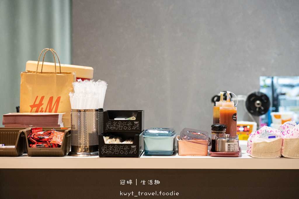 各式醬料、吸管、筷子、湯匙、紙巾都可以在自助區自行取用。