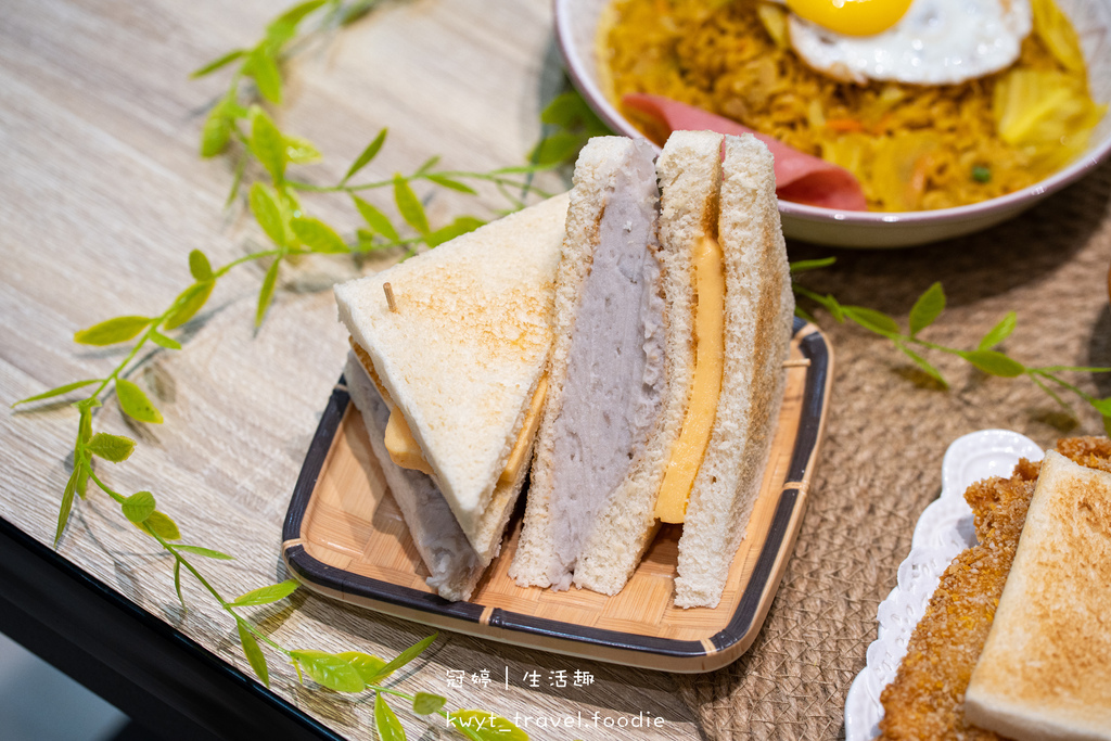 芋泥控可以準備出發了!吐司裡夾著厚度超有存在感的香濃芋泥,剛剛好的甜度,讓人一口接一口吃起來,香而不膩就是好吃。