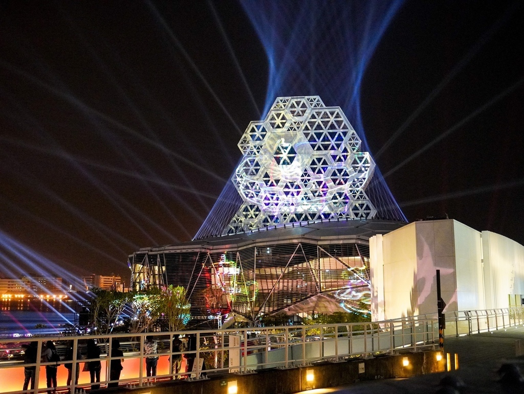 高雄流行音樂中心的場域包括音浪塔、珊瑚礁群、鯨魚堤岸、海豚步道。其中的鯨魚堤岸是面海第一排,不只能坐在堤岸邊觀賞,還能騎乘單車在步道上欣賞光影光影變化的絕美畫面。