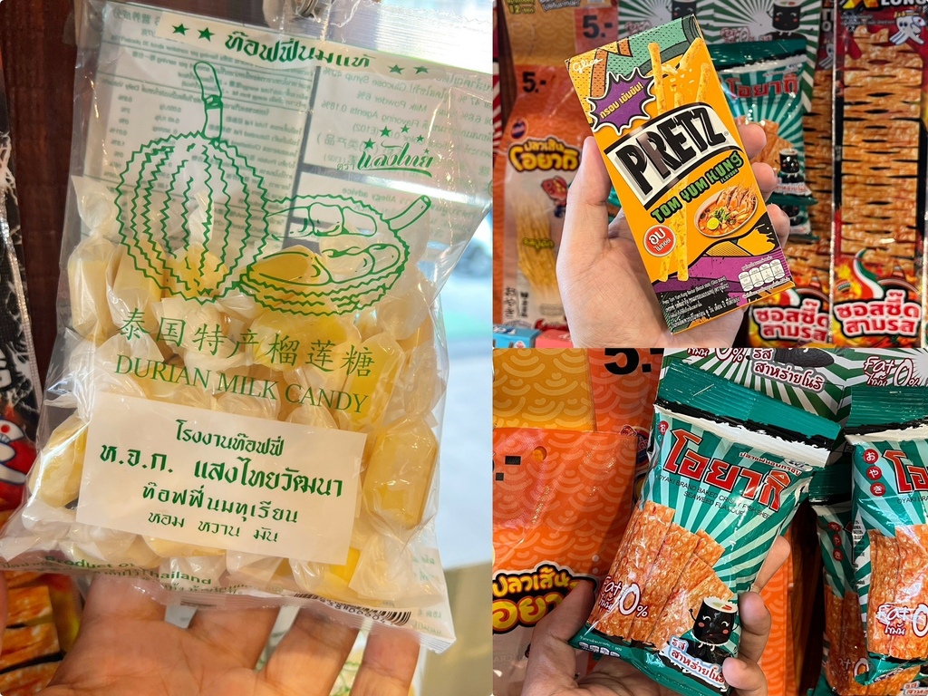 我每次去泰國都會買PRETZ,酸辣海鮮湯口味、打拋豬口味都很有特色,還有超辣的魷魚片、超濃榴槤糖,來泰之初都能買得到