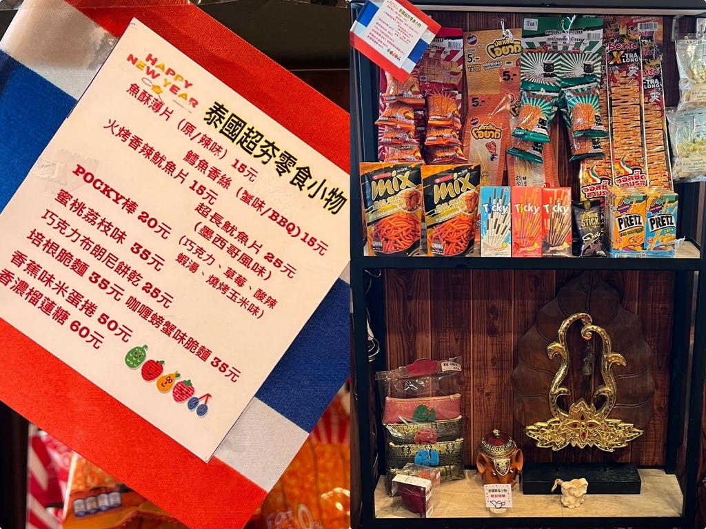 外觀「泰」味十足,店內也有販售多款泰國零食、紀念品,整間店充滿泰國元素,讓人有一秒到泰國的錯覺,相當用心的泰國料理店,一吃就會被圈粉
