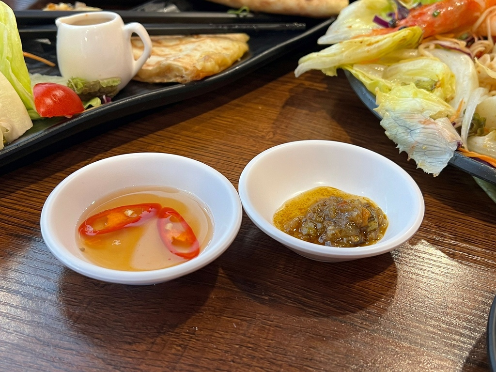 吃泰國料理醬料頗重要,泰之初提供泰式辣醬、檸檬汁魚露等佐料,都是店家特調的滋味,其他泰國料理店很少見的味道,